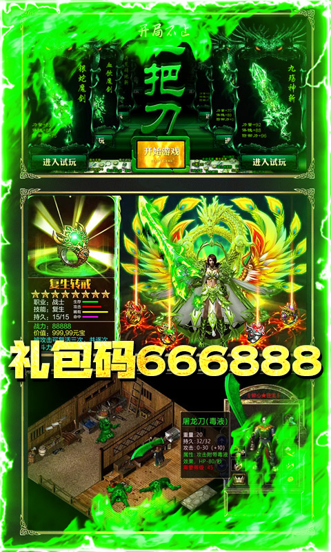 1、上线赠送白金赞助,钻石9999,元宝9999,绑金288W