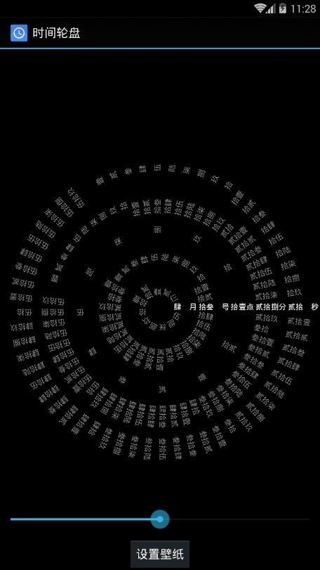 3、罗盘时钟是一款简单实用的手机壁纸设置软件,用户可以根据壁纸上不断移动的轮盘来看当前时间,支持炫酷的旋转功能,就像时钟指针,但是轮盘上都是分秒文字。
