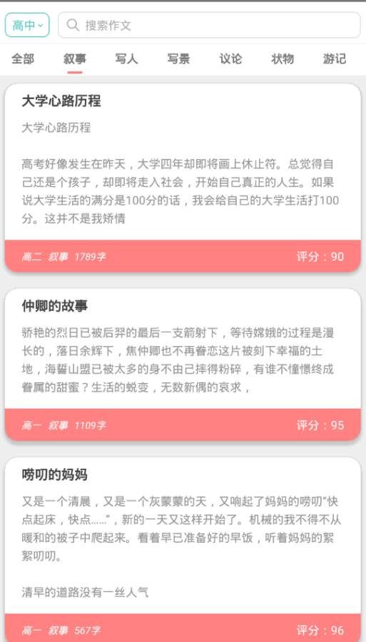 2.平台上有精细的作文分类,你可以通过精细的分类查找你想要学习的内容。