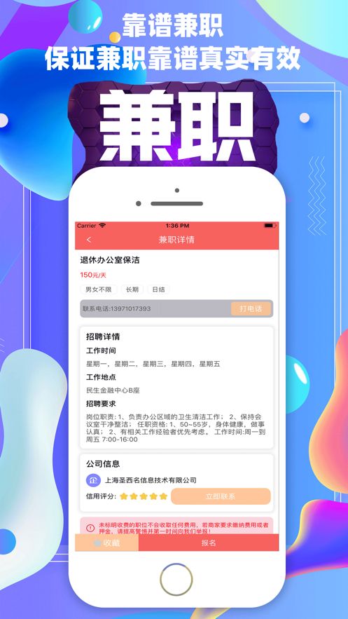 2、平台全程有安全保障,让用户可以安心找工作,赚钱无忧。
