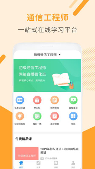 通信工程师考试app是一款学习与备考应用,集合了智能题库、视频课程、直播课堂与自学学习包等模块,能够从多个方面为参加通信工程师考试的考生提供指导和资源,考生可以随时随地的学习,也能利用空余时间练习题目,通过不断的练题可以提升解题效率,还能熟悉题型的解题套路,在真实的考场中不用担心时间不够用。而且,这里的名师众多,100+名师每天在线直播教学,在学习过程中有问题还能实时答疑,非常的方便,是备考的好助手,还在等什么,马上下载准备考试吧。