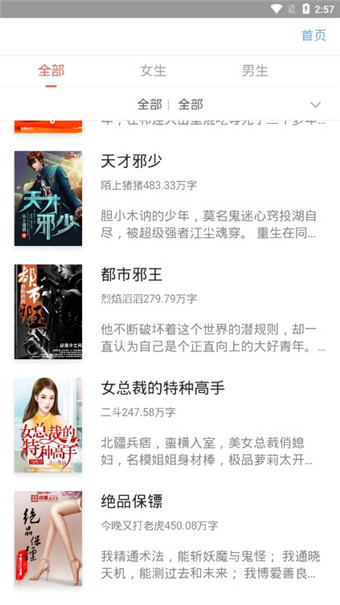4、丰富的题材分类,支持书架管理,还有精准的搜索,阅读很流畅,无任何的广告。