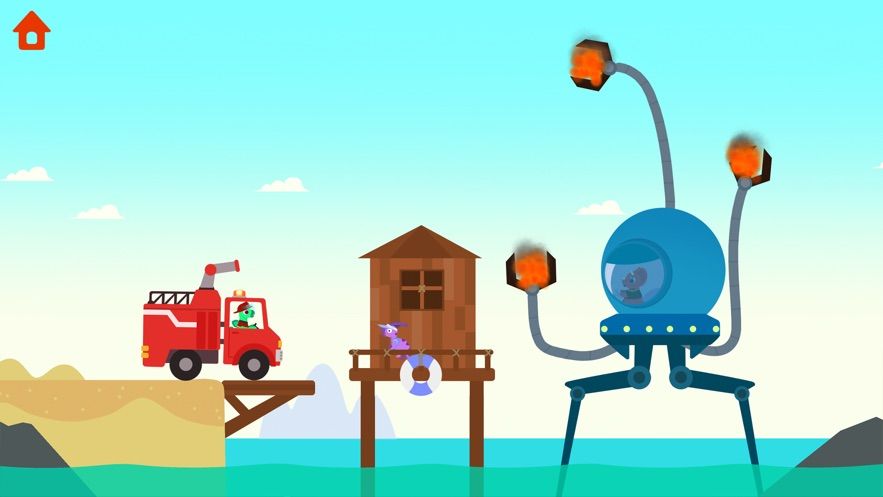 恐龙消防车APP是一款早教类型的儿童游戏。恐龙消防车将物理和消防相结合,是款早教类型的益智游戏。在游戏里小朋友通过驾驶消防车,前往森林、矿洞、田园、海岛、机械工厂和化学工厂灭火,在玩游戏的过程里发现物理的乐趣,可以让小朋友边学边玩。