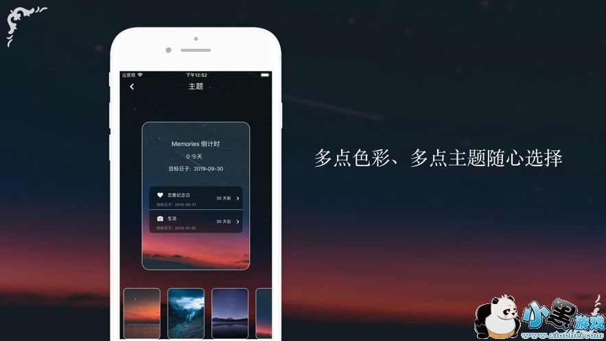 1、有多种主题,每种主题都配有不同的壁纸,每一个纪念日都可以设置不同的标题;