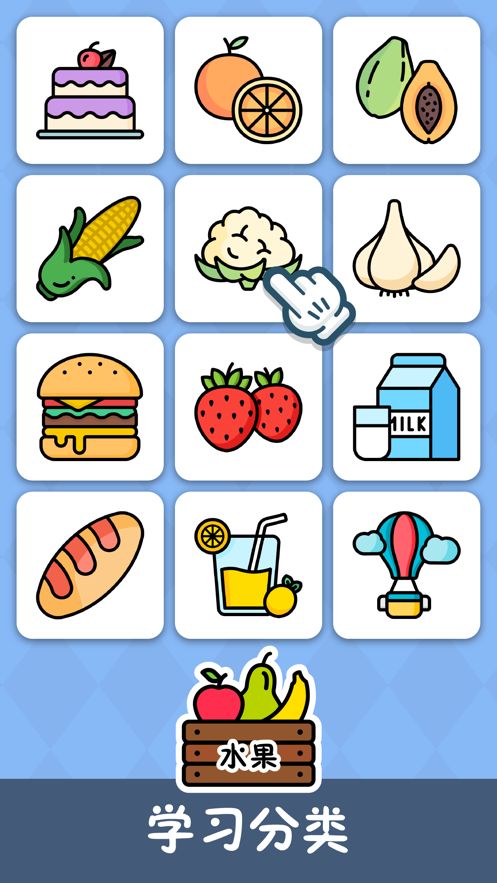 1、这里有很多主题,每个主题对应不同的食物,我们让宝宝从简单的开始学习,让宝宝的接受度更高;