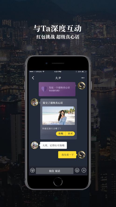 2.摆脱了无聊尴尬的气氛,在这里可以帮助你的选择,来智能匹配你心仪的另一半。