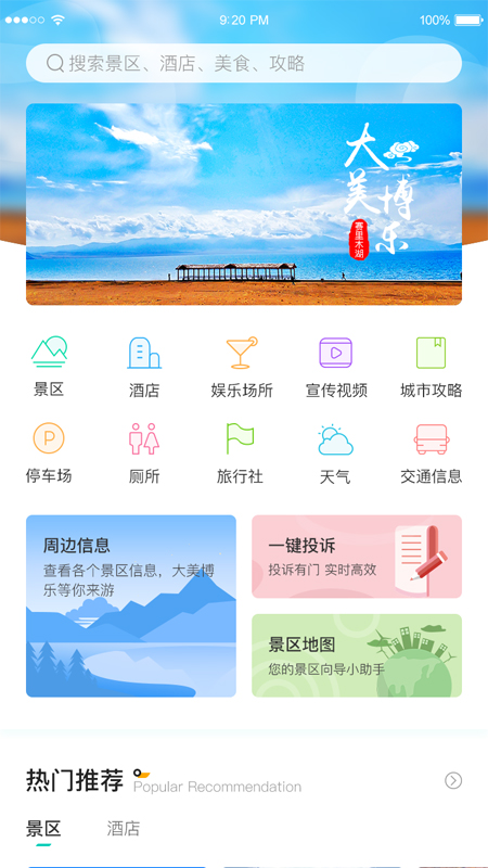 通过位置定位信息可以及时的发现距你最近的景区信息。