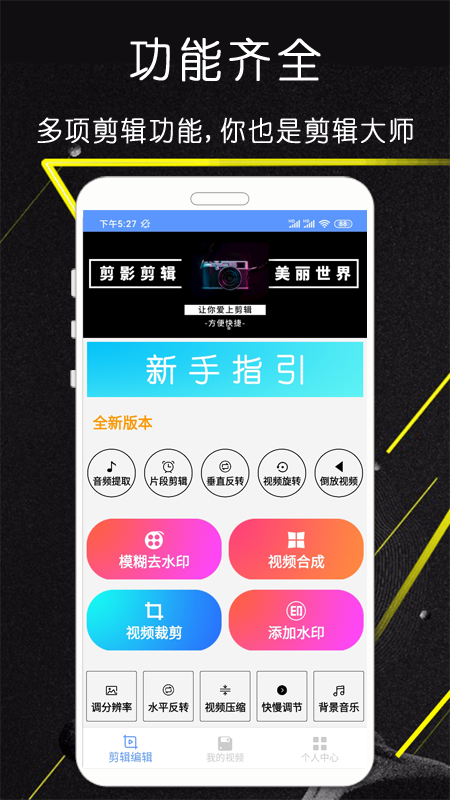 《快剪视频编辑》:快剪视频编辑有画中画、多格分屏、录音、变声、加字幕、去水印、滤镜美颜、多段配乐、变速、倒放、调色、视频转码、动态贴纸……众多实用的视频编辑功能。