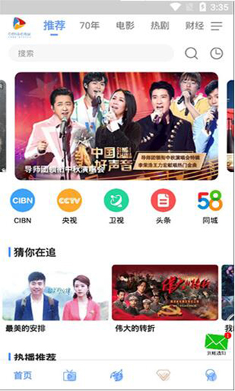 CIBN手机电视app是一款可以捧在手掌心上面的电视直播软件,该软件拥有目前最齐全的电视频道,超多的电视频道,让你嗨翻一整天,而且电视直播也支持预约和回放,这样的功能就十分实用了,对于工作比较忙的群体来说,往往因为工作原因,下班回到家老是不记得看电视剧或者直接就错过了,不要紧,本软件支持预约提示功能,一步到位提示你电视信息,错过了也不要紧,只需要拿起的手机,选择节目单观看回放就好了,让你不错过每一刻精彩十分。不仅如此,该软件还能够观看电影,网络当下最热门的影视一应俱全,真正让你想看什么就看什么。这么全能好用的软件看,赶紧来下载吧!