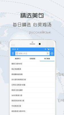 非常好用的必备生活翻译软件,能够应用在超多的方面,生活中还是学习中。《中英翻译官》是一款智能化的英汉互翻软件,超多优美的文字等你来欣赏,外国旅游必备的学习软件,轻松提高你的口语能力,各种场景模拟对话,非常的便捷,喜欢的用户欢迎来本站安装使用吧。