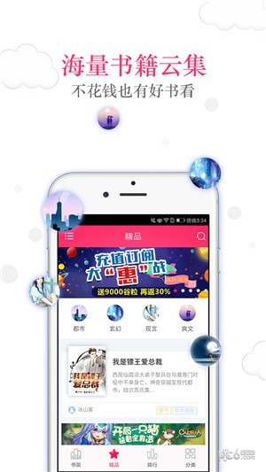 4、分类清晰:多种书籍分类清晰,轻轻松松找到你想看的书:琅琊榜、芈月传、三生三世十里桃花 、完美世界、大主宰、我欲封天、天域苍穹、魔天记、择天记、校花的贴身高手、雪鹰领主、灵域、云中歌、花千骨、盗墓笔记等,多维度满足各类书虫的喜好与需求。