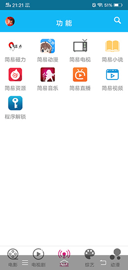 简易影视是一款功能强大的影视播放软件,专为广大的影视爱好者们量身打造,畅享观看全网的影视资源内容,各大VIP栏目随心所欲任意观看,画质高清,播放效果流畅,实时更新热播网剧,给大家带来最优质的观看体验。在简易影视搭载的简易磁力、简易动漫、简易电视、简易小说、简易资源、简易音乐、简易直播的多功能使用效果体验下,用户能够在一款软件上体验全部的生活娱乐功能。简易影视为广大用户朋友们提供非常贴心舒适的观影体验,让每一位用户朋友们都能感受到免费观影的乐趣,汇集了芒果TV、腾讯视频,PP视频以及爱奇艺视频等多家影视媒体资源,其包含的影视类型也非常丰富,支持动漫、电影以及电视剧和综艺等,还有大陆、欧美以及港澳和日韩等多个地区的视频,在线的视频播放极其流畅,全屏而且是没有广告的,喜欢看什么就直接去搜索吧,而且一些经典的老影视都可以搜索到,在每种影视类型的媒体资源下,用户还能享受简易影视所带来的全功能操作体验。用户朋友们可以在这里观看到各类丰富精彩的影视,致力让手机观影变得更加的简单,畅享优质观影体验,拥有海量高清影视播放资源,还可以让你在这款软件中享受到极速点播,使用无广告清爽,全网播放支持率最高,主要有电影、电视剧、综艺等板块,实时更新最新内容,同时还有热播榜方便观众查看最受欢迎的视频内容,支持多种清晰度,去掉了广告体验更出色,是在线看电影追剧的不二之选。