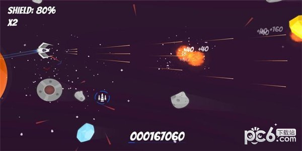 2、在游戏中,玩家主要操作小型宇宙飞船在太空中移动,避开所有的陨石,并使用武器射击前方的障碍物。