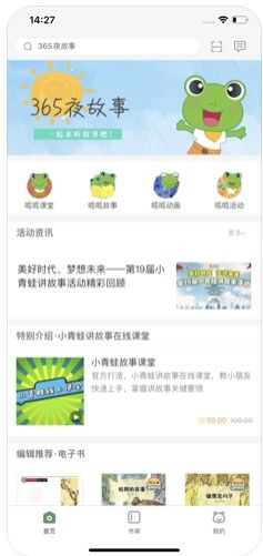 小青蛙讲故事APP所有的书籍都有音频阅读模式,在晚上小朋友睡觉时我们就可以打开这个模式,让不同的故事陪伴小朋友入眠;多读这些故事可以让小朋友明白许多道理,增加阅读乐趣;是一款为儿童设计的阅读类型软件。小朋友到了晚上经常会要求爸爸妈妈讲故事给他们听,让他们便听故事边睡觉,但是时间一长讲故事也不知道讲什么,这款软件就可以帮助我们解决小朋友想要听故事的烦恼,有丰富的故事,还有各类精彩的绘本。