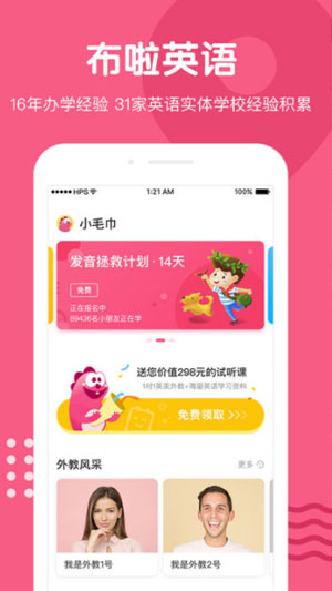 这是一款好用的线上英语教学应用;提供专业的1对1外教课程,提供1对多公开课;课程涵盖幼儿英语、青少英语、成人英语;布啦英语由庞大的教研团队,技术团队支撑,为所有想要学习英语的用户提供服务。