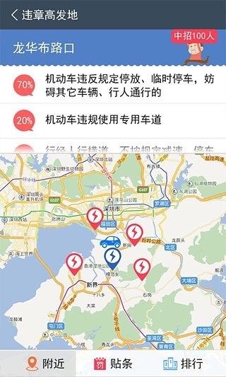 4. 违章预警:违章高发地、贴条高发地、新增违章点重点提醒
