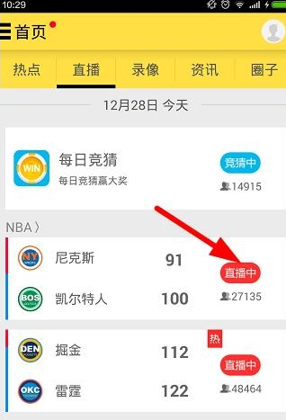 3、点击“直播中”,如果您正在使用流量上网,可以直接点击“文字直播”
