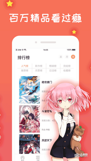 3、各种排行榜让你发现好看的漫画,人气榜、新作帮、畅销榜、完结榜、推荐榜等等;