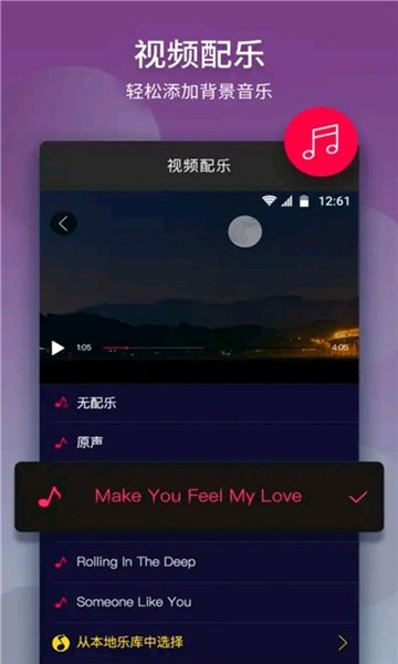 2、制作视频的时候,用户可以在线添加音乐,文字,让你的视频效果更加的丰富;
