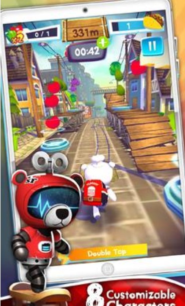 2、以熊为主角。它更可爱。跑酷路上会有各种障碍物,狗会追你。