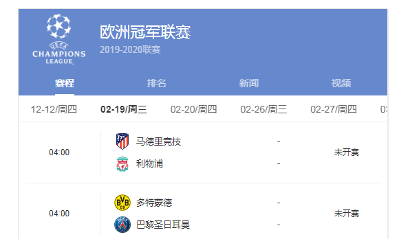 欧冠赛程app功能