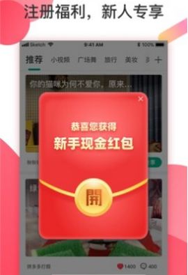 3、实时更新热门精彩的短视频哦,在这里根据你的兴趣推送哦,新用户可以直接领取到奖励。