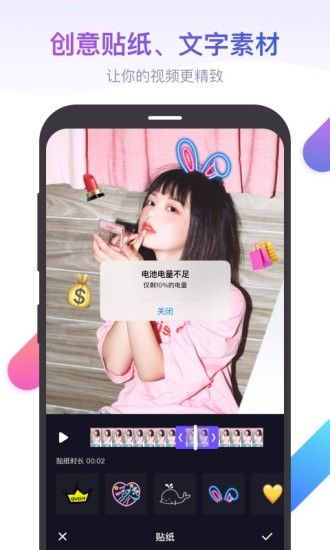 音乐、贴纸、文字等各种素材一应俱全,随心添加,用最简单的方式完成专业的视频编辑,为你的每一个视频加上不一样的惊喜和趣味。