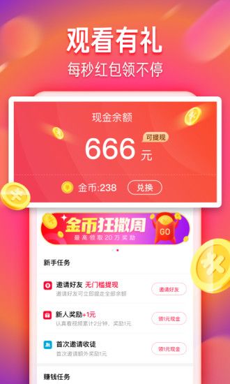 1、轻量体验:小体积看大世界;2、观看有礼:每秒红包领不停;