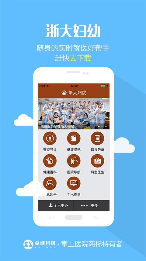 浙大妇院Apppcation是以移动互联网、云计算、物联网、大数据等为特点的“智慧化”信息革命,目前已实现科室医生、取报告单、医院导航、健康资讯、智能导诊、健康百科、手术查询、排队叫号等功能。