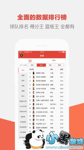 全面的数据排行榜,球队排名、得分王、篮板网全都有。
