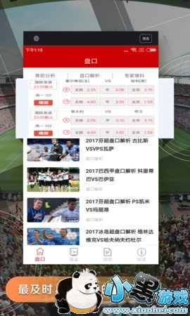 一款球迷必备的足球应用,提供足球原创资讯、及时比分、准确推荐等于一体的APP。