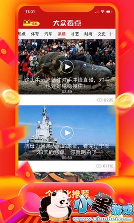 电影、音乐、小品、搞笑直播......亿万精选视频只需轻轻一点,大众看点为你智能筛选出你感兴趣的资讯内容。