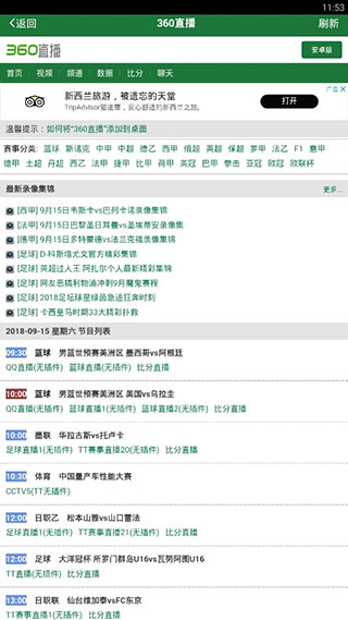 360直播App是由360直播网专为体育迷们打造的一款手机体育直播软件。它是一款网罗了网络上大量热门运动的直播应用app,涵盖了所有热门体育比赛的直播,在这里用户能够一键掌上观看比赛,体育赛事提前知,每日更新最新资讯,各国运动直播随时看。种类包括篮球、足球等各赛事的最新现场比赛直播,支持缓存,让你随时随地都能看比赛!你可以在这里找到篮球足球等各种相关赛事的现场直播,第一时间在线看那些与众不同的精彩,为了避免小伙伴们错过,所有视频都可以留存下来哦。