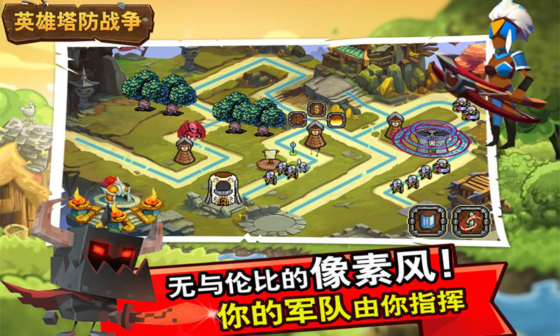 经典的英雄塔防战争游戏,游戏中你将在在危机四伏的战场中合理指挥,组织你的队伍防守敌人的猛烈进攻!