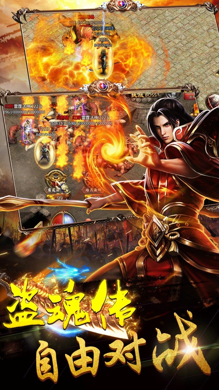 1、野外boss,无情争夺,神装就是你的终极目标,所有的玩家都是敌人,打败他们,夺取神装。