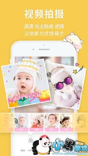 3、视频拍摄:高清、贴纸、滤镜,让你成为炫娃萌主。
