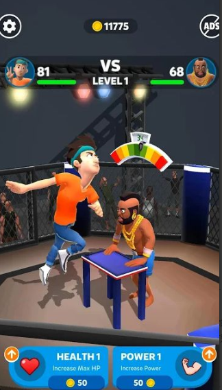手指点击屏幕会出现一个力量值,等待力量值达到一个合适的位置时再次点击屏幕即可以当前的力量打出一巴掌,之后两边双方重复这个流程知道某一方支撑不住之后便可获胜。
