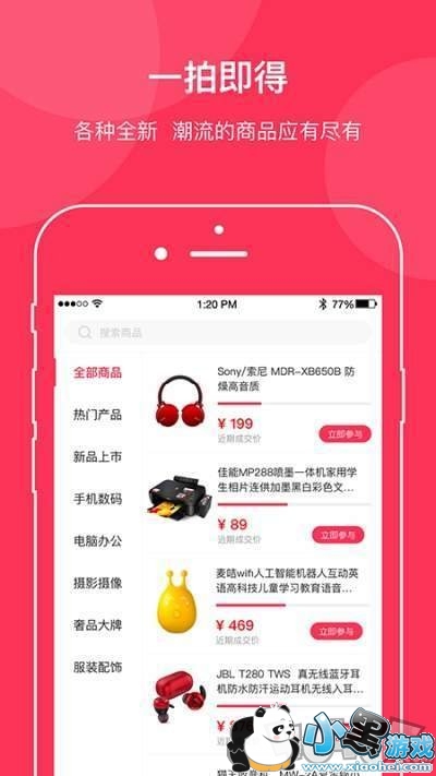 超值抢拍安卓版是一款提供购物相关服务的手机应用,超值抢拍安卓版推荐品类涵盖家居日用、美食、服饰、美妆等等,为用户提供竞拍活动,一元起拍!台上面不仅为用户提供了海量的优质商品,同时也为用户提供了大量的商品优惠券,多个一线电商平台的商品优惠券都可以在这里领取到,而且用户分享商品给好友,还可以获得佣金奖励哦!