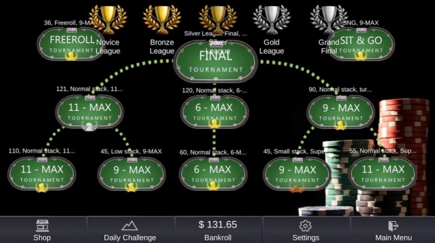 您不需要互联网即可玩世界上最受欢迎的纸牌游戏。随时随地游玩。你可以在世界各地进行德州扑克比赛,从低等级的德州扑克锦标赛到贵宾扑克室。对手的技能水平随着赌注的增长而增长。无论您是新手还是经验丰富的玩家,都可以根据自己的技能找到合适的牌桌。您不必支付真钱即可玩。如果您没有足够的筹码,则可以随时免费获得免费筹码包,然后继续玩最好的纸牌游戏。我们使用经过数百万只手测试的随机播放算法。扑克牌是随机发行的。您在德州扑克中的成功取决于您的技能和运气。