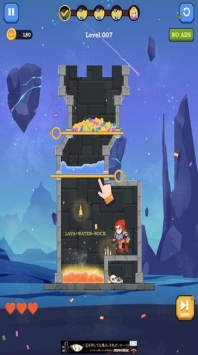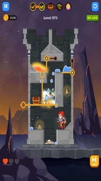游戏中以一关一关的关卡为形式展开,玩家会看到在这些房间里关押着一名人类与怪物,而在关卡的正上方会有一种杀伤力特别强的东西,而这些东西正式用来对付怪物的,你可以尝试拔掉那些销子来让那些东西杀死怪物之后将人类解救出来,每一关都不同,可你要小心思考每一次拔销子,因为它可能会误伤人类而导致你的游戏失败!数以千计的关卡的呢你来挑战。