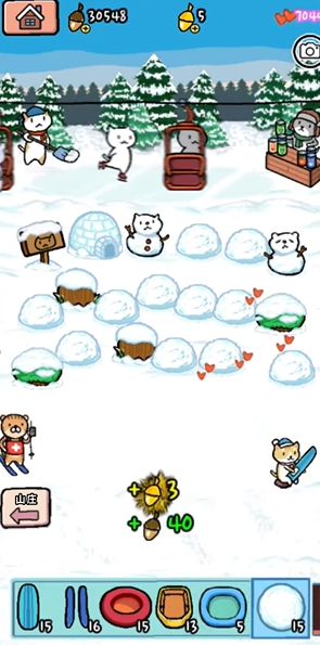 谢大脚:山庄内的各种冬季装饰和玩耍乐趣设置得越多,越会积累更多橡子。如果达到一定级别以上,就能解锁餐厅并准备自助餐,款待饥饿的动物们。请雇用打工猫,有效管理滑雪场吧。