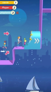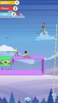 游戏中你会遇到很多竞争对手,来自各个国家,骑着你的单车来完成关卡中各种障碍物,并且还要时刻保持速度,一方面是不让后方的对手追上你,还要争取拿到靠前的名次这样你才可以获得比较好的奖励,用这些奖励来保养你的单车,并在必要时换一辆更好的;但还是安全第一,系好头盔,越过障碍物,攀登绳索和墙壁,尽力成为第一个到达终点的人。