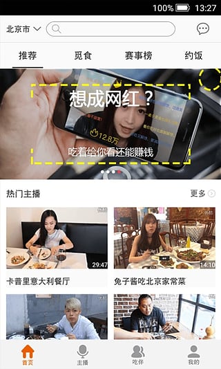 最近这段时间网络上出现了各种直播软件,有直播游戏的,也有直播唱歌跳舞的等等,不知道大家有没有看过直播吃饭的,如果没有,那么您可以下载这款中国吃播app来体验一下,它是由北京涟涟看文化传媒有限公司专门为安卓手机用户而打造的一款美食直播app,用户可以通过该app在线观看到各种有关于美食的直播节目,非常不错,赶紧下载试试吧。