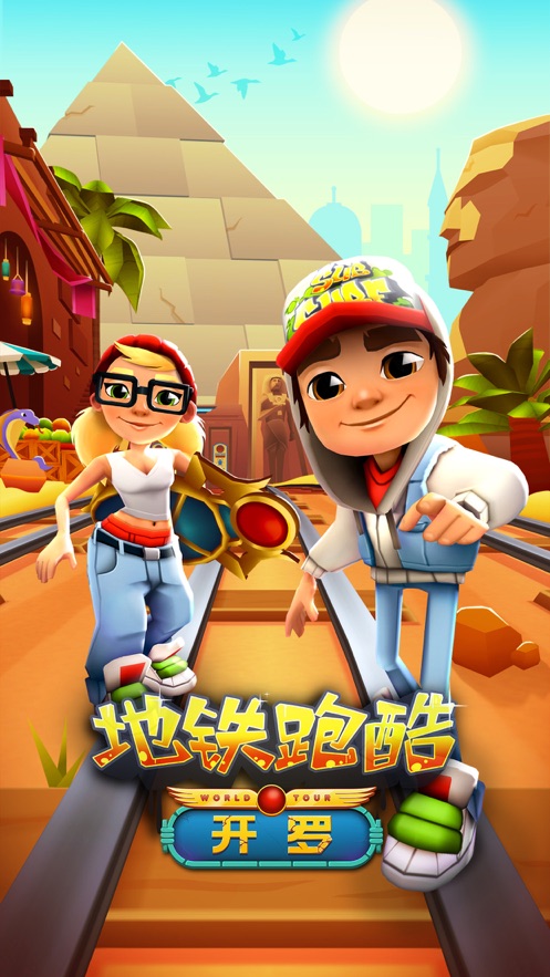 1.《地铁跑酷》世界之旅到达埃及首都开罗,在宏伟壮观的金字塔旁边尽情跑酷