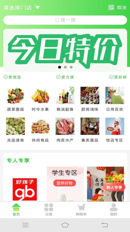 1、平台中有各种时令水果,粮油,副食,厨房调味,日用百货,冻品速食等等。