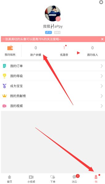 1、首先登陆账号,然后进入【我】的页面,选择【账户余额】。