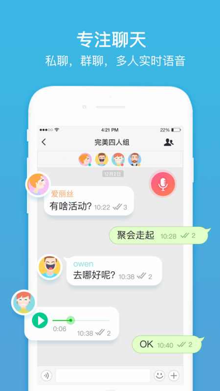 2、【群组聊天】有趣的群组聊天,在这里大家都能进行一场交流。