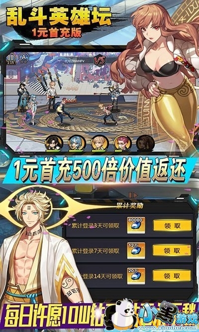 《乱斗英雄坛》是经典韩风的一个卡牌游戏。游戏架构了宏大的世界观,以东西方的成名英雄在乱斗的世界里一起对抗抢夺天书的黑暗组织为主线。次日登录即可领取SS武器,5日登录可以任选SS英雄,8日登录任选SSS英雄,游戏内最强卡直接登录白嫖获得,并且人人都可轻松养成。