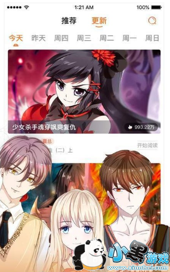 1.漫画每天更新,从星期一到星期日,您可以看到最新发行的漫画;