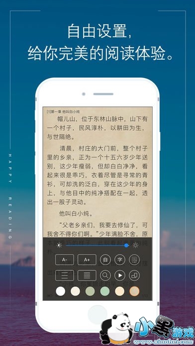 2.读者可以更新背景,字体,大小,翻页,阅读,间距;